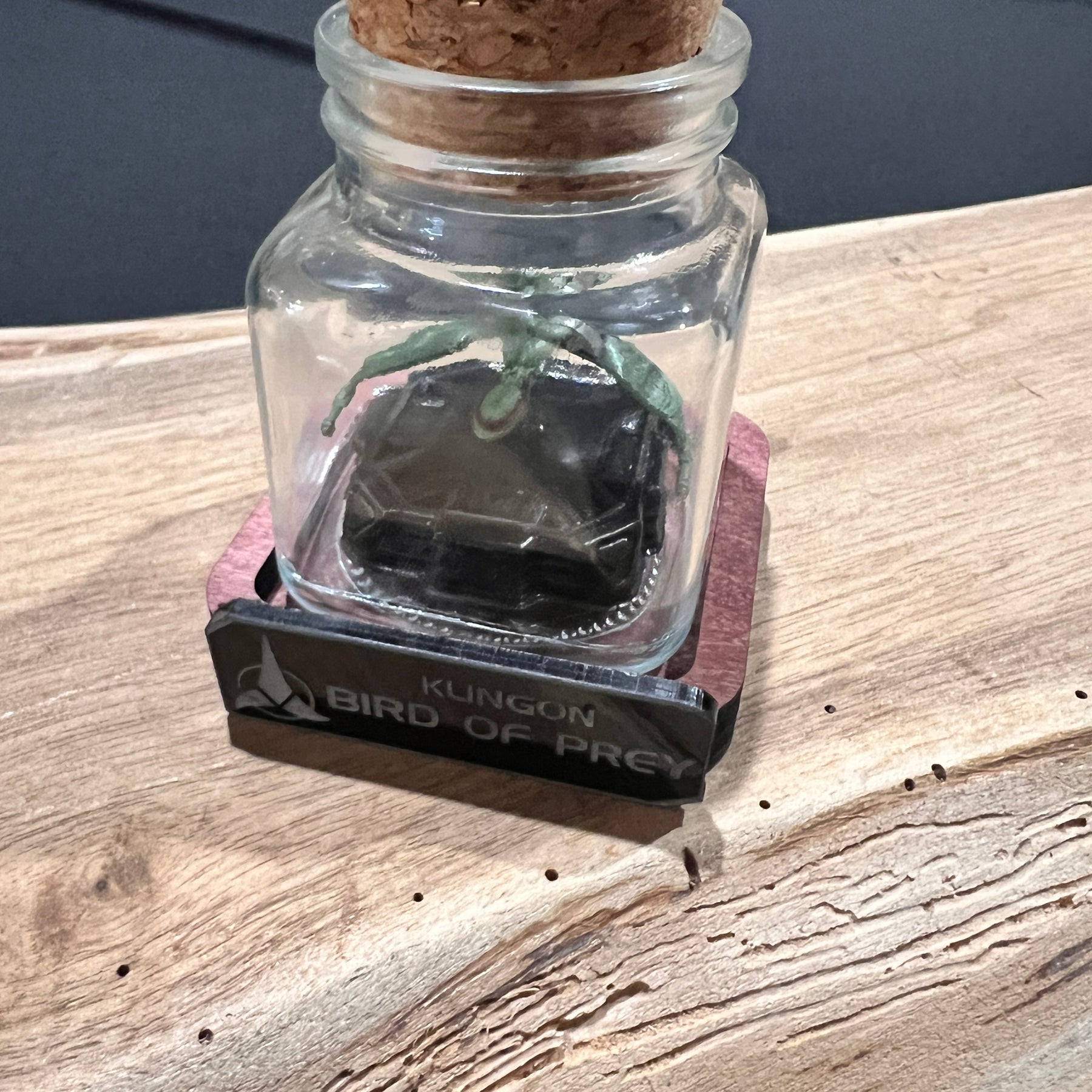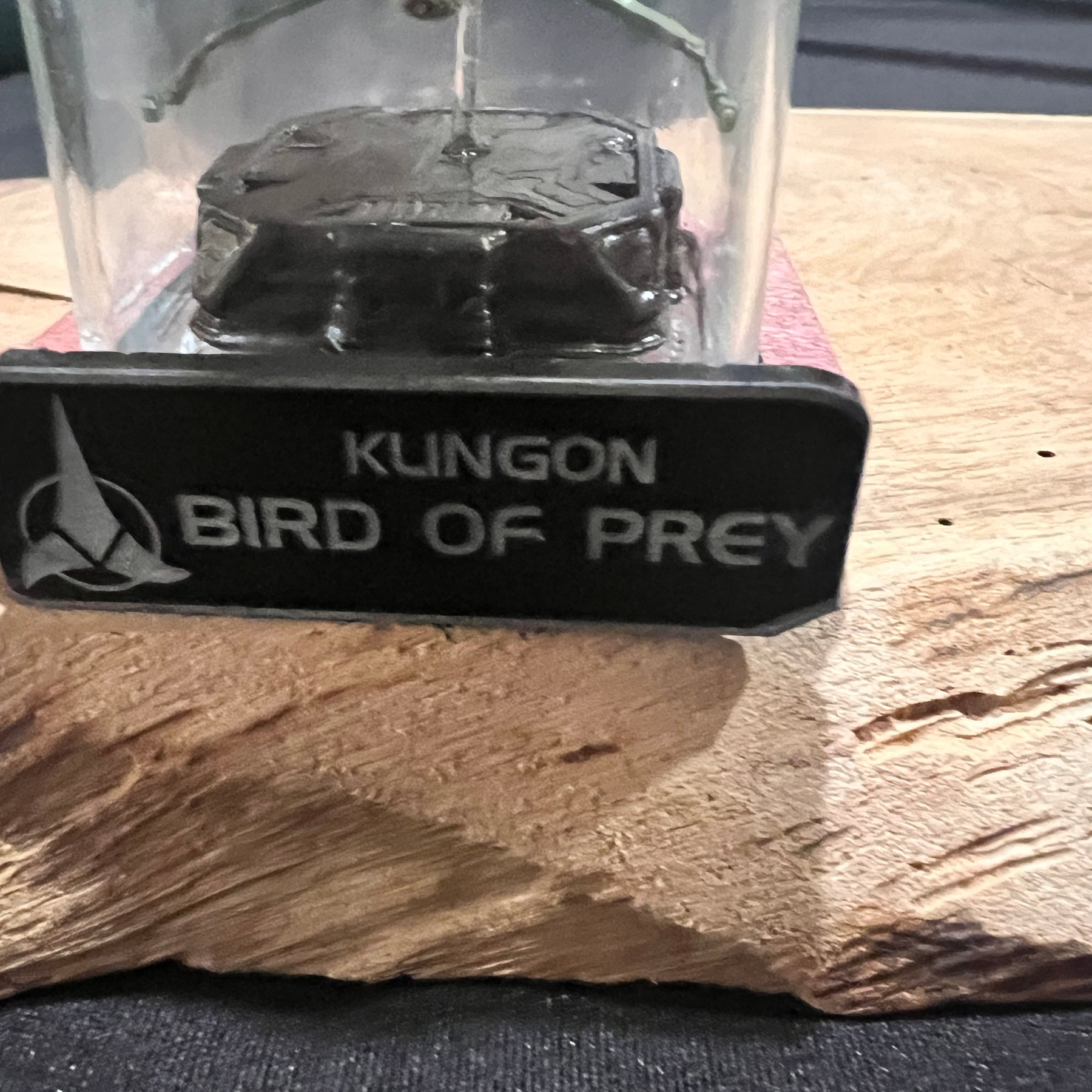 “I can see you Kirk. Can you see me?” Klingon Bird of Prey in a bottle. Comes as shown. This is a great gag gift for a Star Trek fan or funny conversation piece for yourself.